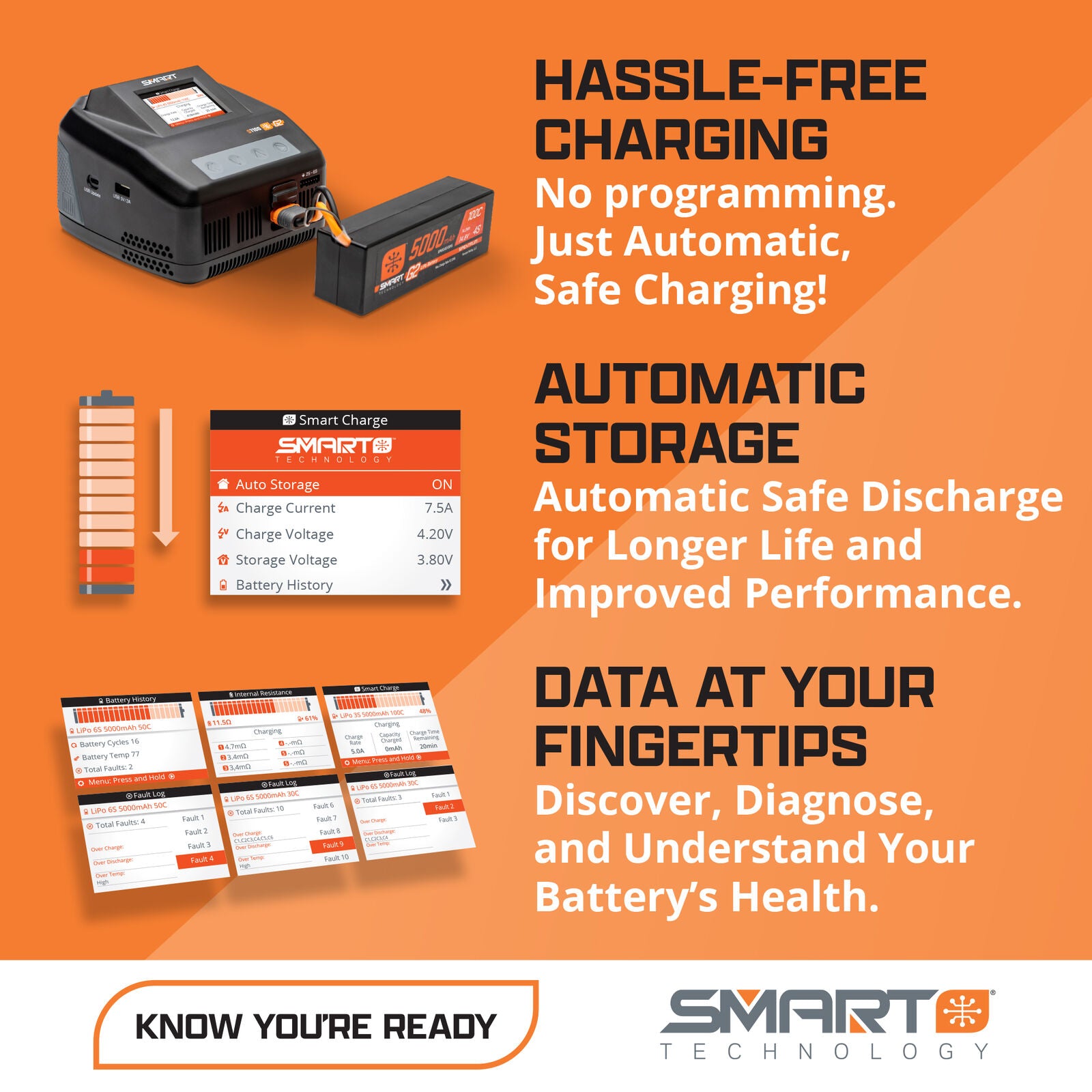 *The Spektrum™ S100 Smart USB-C Charger is unable to charge non-Smart NiMH batteries.