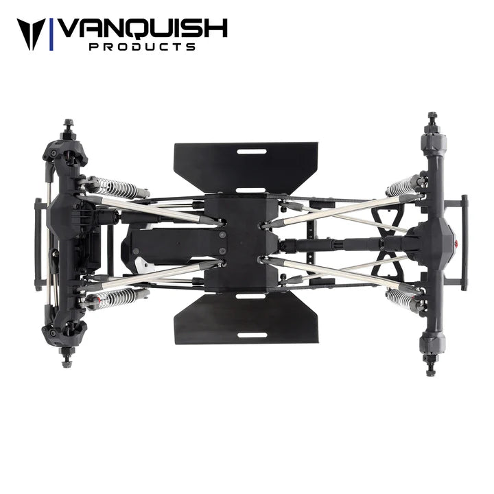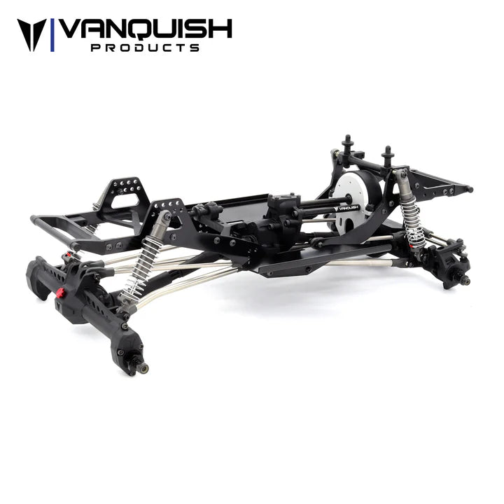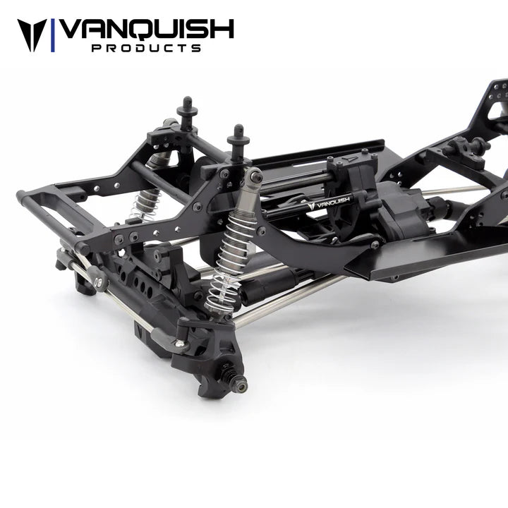 The VRD Mullet Kit includes the Vanquish Products VFD transmission with a F10 Straight front axle and a F10 Portal rear axle. The combination of the F10 Portal and Straight axles delivers a unique experience which blends the low COG of a straight axle with the added clearance of the portal. Aim the front axle exactly where you need it while knowing the added clearance in the back won't stop your progress. The Carbon Spec VFD gives you an upgraded building experience with machined motor motorplate, standoffs and light weight gears.