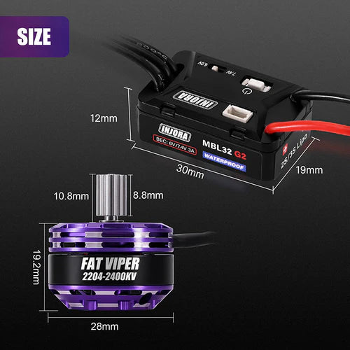 INJORA MBL32 G2 Waterproof Brushless ESC & 2204 Fat Viper Motor for 1/24 SCX24