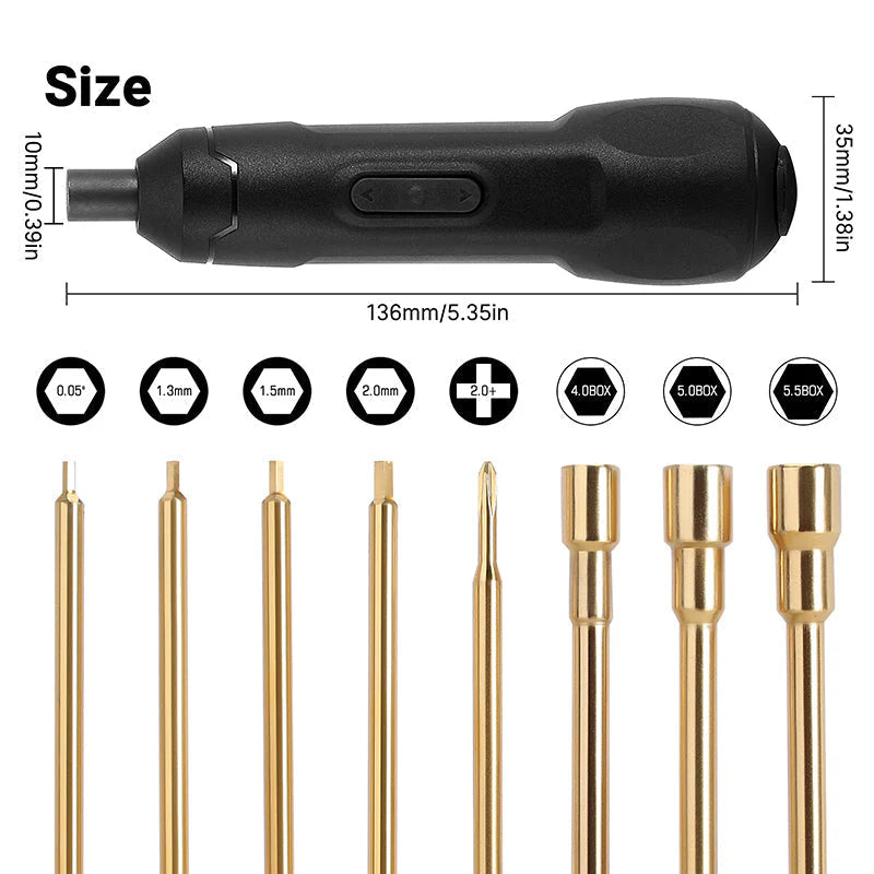 INJORA Mini Cordless Electric Screwdriver Set with 8 Bits for 1/18 1/24 RC Crawlers