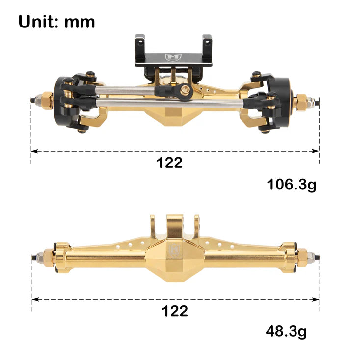 - 6. Brass steering knuckles added weight; other parts, such as differential covers, servo mount, and rear link mount, are made of high-quality aluminum alloy for greater durability, strength, and stability to handle aggressive driving.